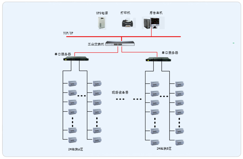 本項目為遵義奧特萊斯城市廣場的2#地塊,其中分為A區和B區,A、B兩個區域,共使用了型號為DDSY1352-NK和DTSY1352-NK的內控型預付費電表328只。安科瑞Acrel-3200遠程預付費管理系統根據遵義奧特萊斯城市廣場實際情況進行組網設計,因為物業要求電費由財務收取,所以將遠程預付費管理系統主機設置在財務室內,而且現場儀表到財務室的距離都不超過300米,所以采集器都安裝在財務室內的操作臺里,現場所有的內控型預付費電表都是通過RS485總線直接入到采集器。