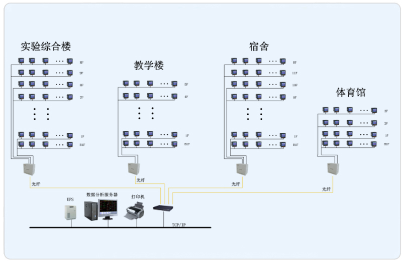 系統(tǒng)采用Acrel-6000型電氣火災監(jiān)控系統(tǒng),整個系統(tǒng)采用網絡分布式結構,監(jiān)控主機位于一樓的值班室。配電回路配備安科瑞漏電火災探測器ARCM300系列。該項目實現了平谷區(qū)濟望幼兒園漏電火災監(jiān)控的時時監(jiān)控。監(jiān)控設備通過屏蔽雙絞線至監(jiān)控主機實現遠程的漏電監(jiān)控。