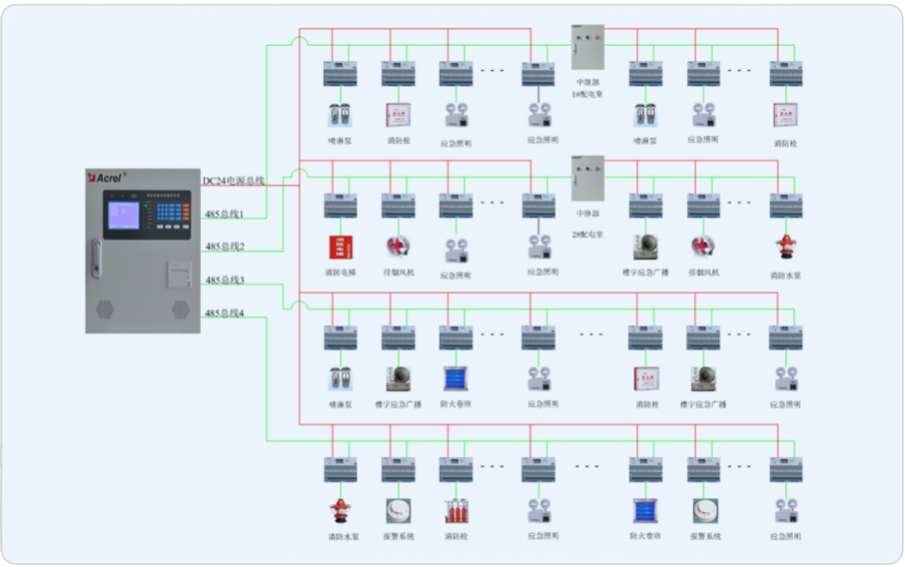 本期工程的監(jiān)控范圍主要為真光廣學(xué)大樓及新建一號(hào)樓,新建一號(hào)樓47個(gè)漏電流監(jiān)控裝置分布在B1~8F中,真光大樓33個(gè)漏電流監(jiān)控裝置分布在B1F~9F中,現(xiàn)為本項(xiàng)目設(shè)計(jì)一套Acrel-6000電氣火災(zāi)監(jiān)控系統(tǒng),監(jiān)控裝置通過(guò)集線(xiàn)器及光纖至電氣火災(zāi)監(jiān)控裝置,并由此來(lái)實(shí)時(shí)監(jiān)測(cè)商業(yè)樓內(nèi)重要回路的漏電流,以確保商業(yè)區(qū)配電系統(tǒng)的電氣安全。