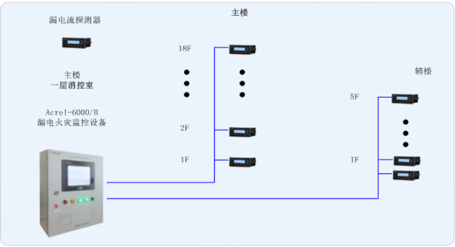 新食堂為地上三層、地下一層,占地面積約為2100平方米,地上建筑面積約為6300平方米。我司承接其電氣火災系統的搭建,對安裝于食堂樓層配電箱進線處的ARCM200系列剩余電流火災探測器設計一套Acrel-6000/B電氣火災系統,由此來實時監測樓層內重要回路的漏電流,以確保變電所配電系統的電氣安全。