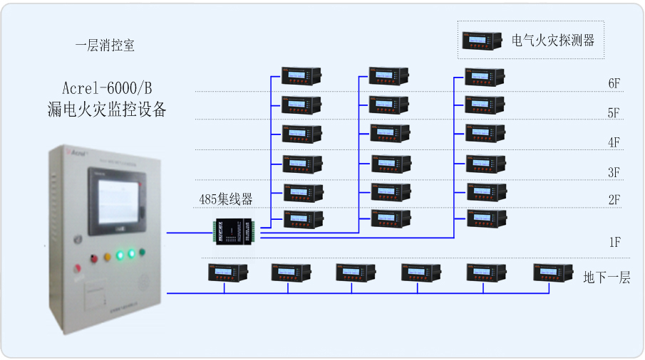 本項(xiàng)目地上六層,地下一層。現(xiàn)需對(duì)整個(gè)紅星美凱龍家居生活廣場(chǎng)重要用電回路進(jìn)行監(jiān)控。安科瑞電氣股份有限公司為本項(xiàng)目設(shè)計(jì)一套Acrel-6000/B漏電火災(zāi)監(jiān)控系統(tǒng),并在重要進(jìn)線回路安裝電氣火災(zāi)探測(cè)器ARCM200,由此來(lái)實(shí)時(shí)監(jiān)測(cè)變電所內(nèi)重要回路的漏電流,以確保變電所配電系統(tǒng)的電氣安全。