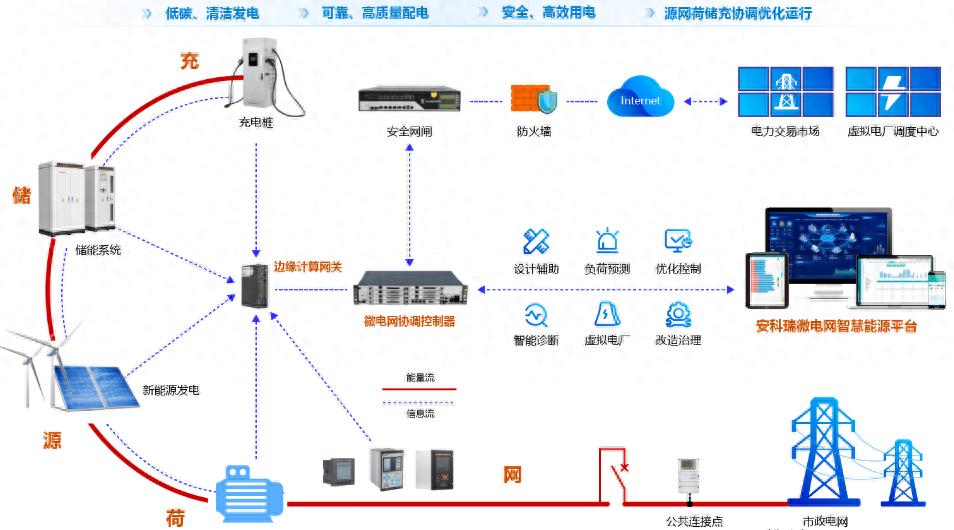 應用層:集成發(fā)電預測、經(jīng)濟調(diào)度、碳排管理、智能運維等模塊,通過AI算法動態(tài)優(yōu)化能源策略。