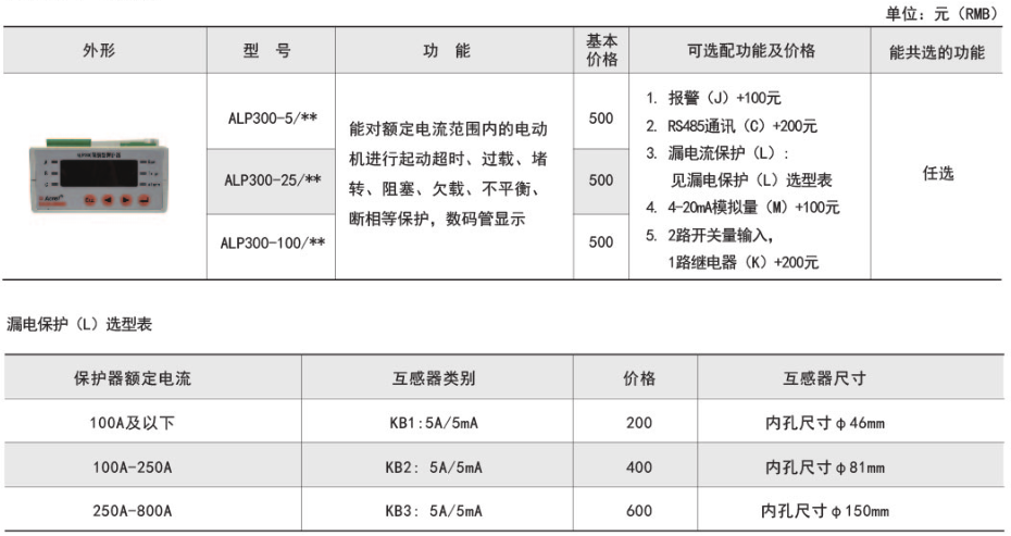 技術要求:輸入電壓AC 220V;工作頻率50Hz;電流變比200A/5A;漏電保護KB2模塊;準確級0.5。