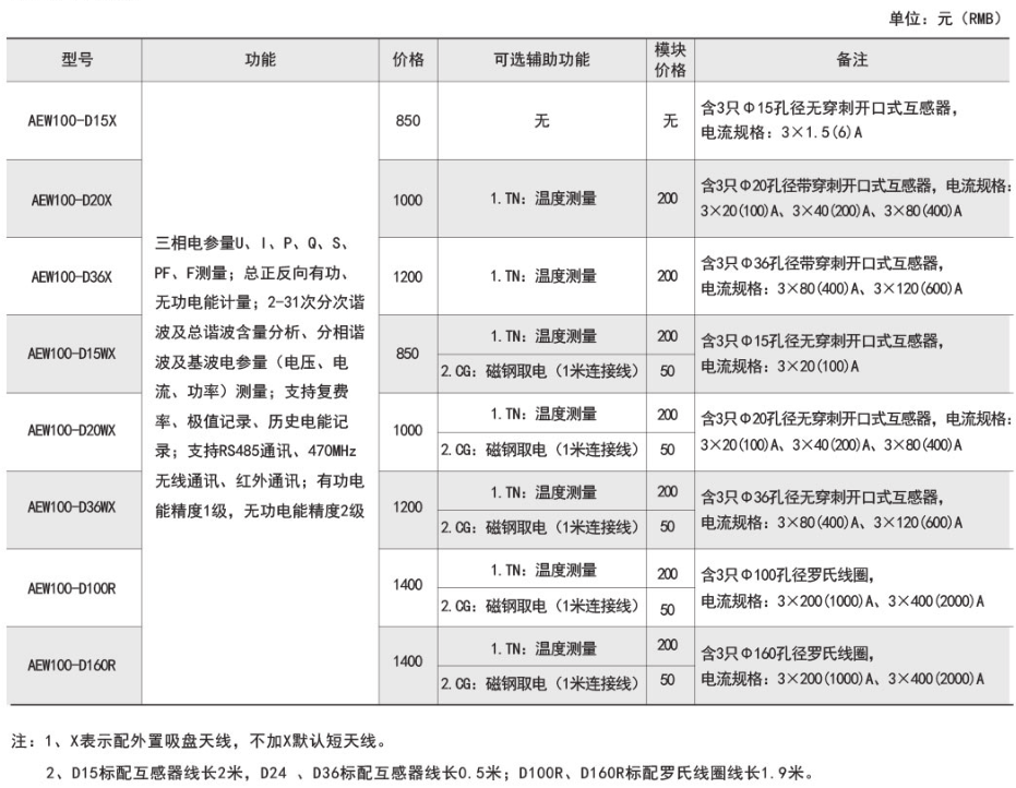 AEW100無線計量儀表主要用于計量低壓網絡的三相有功電能,具有RS485通訊和470MHz無線通訊功能,方便用戶進行用電監測、集抄和管理。低壓系統計量回路。具體型號:AEW100技術要求:3×220...