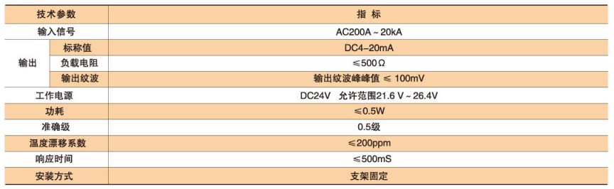技術(shù)要求:輸入電流AC1000A;輸出DC4-20mA;準(zhǔn)確級(jí)0.5;長度350mm。
