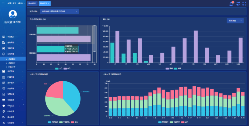 按照分項/區域/部門等不同的組織方式進行報表統計與展示,方便用戶從多個維度使用用能報表。