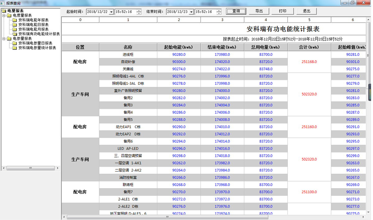 系統(tǒng)具備定時抄表匯總統(tǒng)計功能,用戶可以自由查詢自系統(tǒng)正常運行以來任意時間段內(nèi)各配電節(jié)點的用電情況。